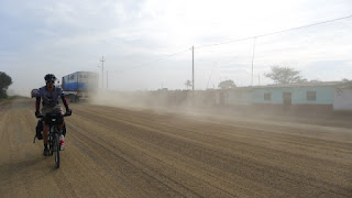 Arrivee au coucher du soleil a la premiere ville etape; Pacasmayo.